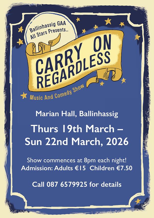 Tickets are on sale this Sunday 8th of March from 2pm to 4pm in the Marian Hall.