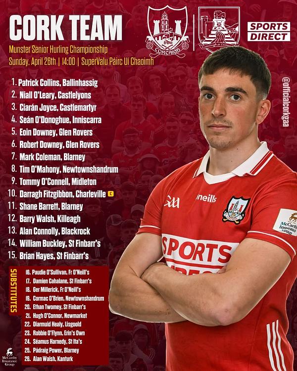 Best of luck to Patrick, Darragh and the Cork team and...